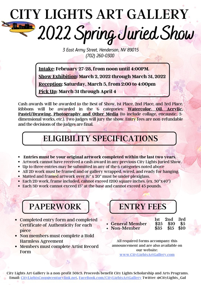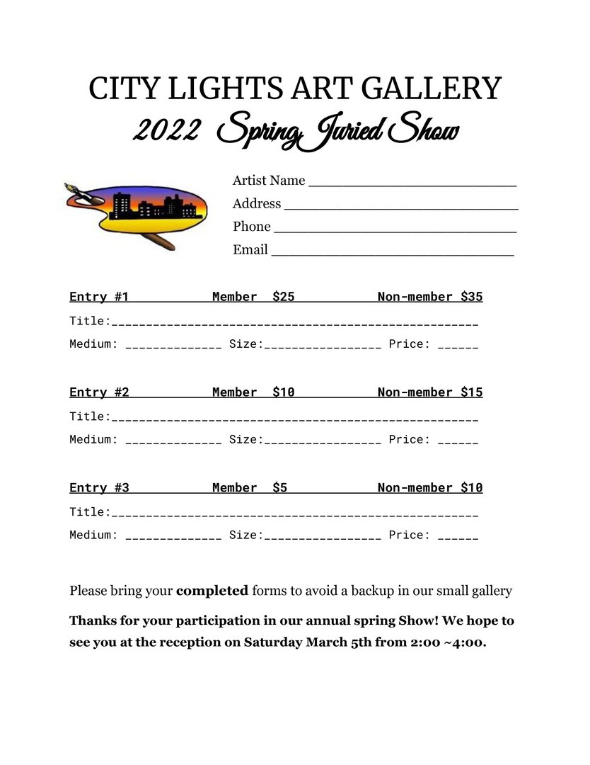 Forms will be available at the gallery on the days of art intake on Feb 27th and 28th from 12 to 4 pm. If you have any